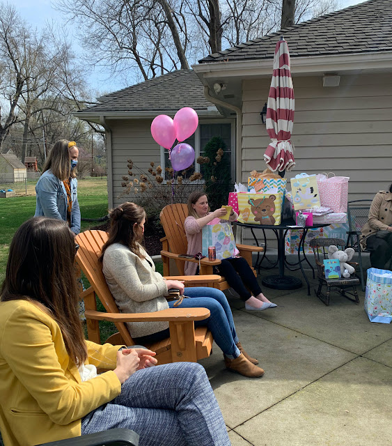 The baby shower for Frances was in Morgan's backyard with masks and social distancing, although most of us were vaccinated. The weather was cooperative so it was quite nice.