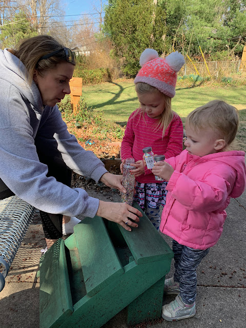 Vala and I planted pansies in the front pot. We're optimistic for spring. We disagreed a bit on where the soil should go.