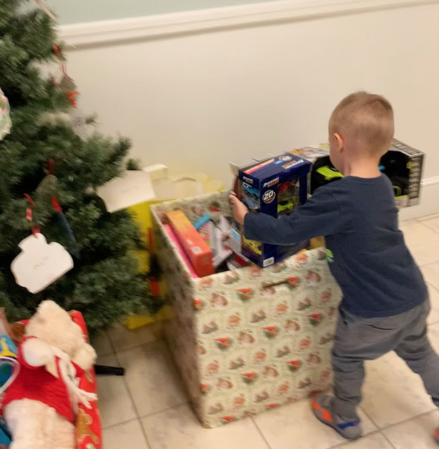 Adam and I bought toys for Operation Breakthrough's toy drive. He put the cars we brought in the box but of course needed to check out the other cool toys.